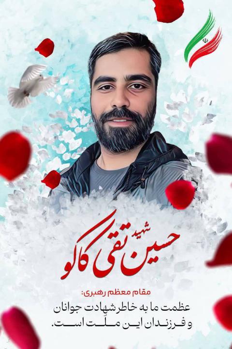 شهید حسین تقی کاکو سر انجام در سن ۳۶سالگی همانگونه که آرزوداشت در لباس پاسداری،در دفاع از میهن عزیزمان ،توسط شقی ترین افراد، رژیم منحوس صهیونیستی ،در تهران به همراه همرزمانش به فیض شهادت نائل آمد.
