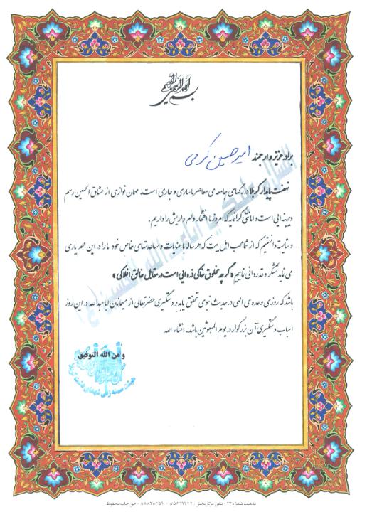 برای خشنودی دل آقا امام زمان(عج) و شادی روح زنده یاد (محب الحسین امیرحسین کرمی) صلواتی قرائت بفرمایید.