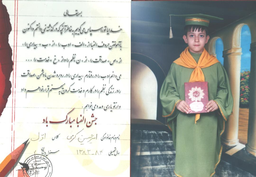 Amir Hossein began his education with a passion for learning and a love of science at Tohid Elementary School. From the very early years of school, he had an active and hardworking spirit and pursued his academic path with seriousness. He spent his middle school years at Imam Khomeini School; a period that, in addition to academic growth, further demonstrated his areas of moral, social, and responsible development.