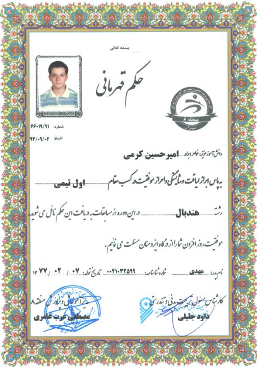 Amir Hossein then entered Daneshmand High School and completed an important stage in his education and study process at this stage. During his student years, he did not limit himself to academic education, but was always active and effective in various religious, sports, and scientific activities.