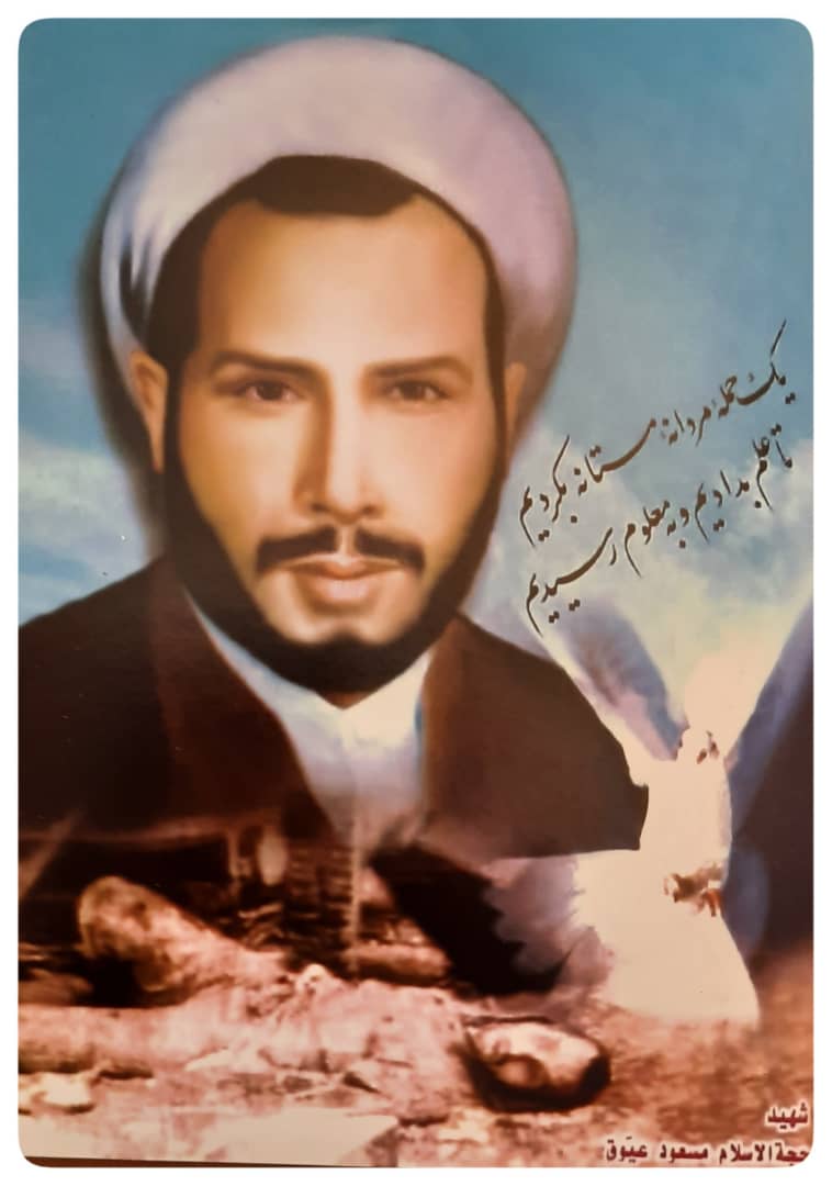 شهید مسعود عیوق در 27 شهریور ماه سال 1343 در تهران متولد شد.این شهید والامقام دارای ملیت ایران و مذهب اسلام شیعه بود.وی تحصیلات خود را تا مقطع سیکل وحوزوی ادامه داد و به عضویت بسیج درآمد. این شهید گرانقدر سرانجام در 23 اسفند ماه سال 1363 در سن 20 سـالگی و در عملیات سال بدر حوادث ناشی از درگیری در شرق دجله به شهادت رسید. مزار این شهید در قطعه 50 ردیف 64 شماره 20