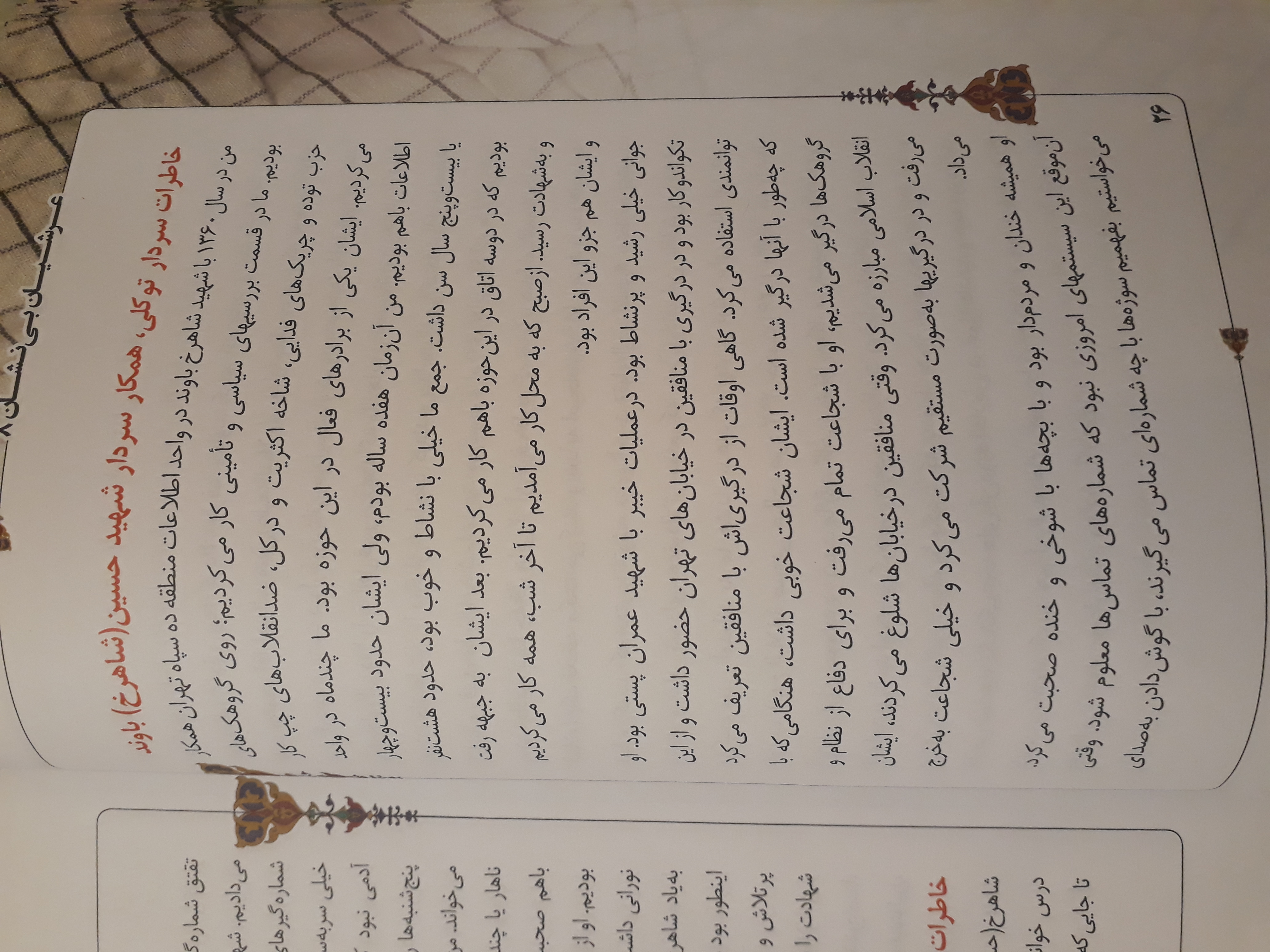 رفتار او، رفتار محمدی، علوی و حسینی بود. ایشان بی نهایت اهل گذشت بود.یعنی همه گونه و در همه زمینه ها اهل گذشت و ایثار بود. خوشحال ترین روزی که او را دیدم روز فتح خرمشهر که در جبهه ها اتفاق می افتاد یا اتفاقات بدی که در شهرها می افتاد می شد، خیلی او را آزرده خاطر می کرد. بسیار کم حرف و بیشتر مرد این بشر، پرکار و فعال بود. یک میز کوچک و قدر آن، کارهایش را انجام میداد. یک میز کوچک و قدیمی طلاب را داشت که روی آن کارهایش را انجام میداد. آن زمان امکاناتی نبود، ماشین نداشتیم مجموعه تشکیلات در آن زمان یک موتور داشت. اواخر شروع کرده بودند به بعضی از بچه ها | حواله موتورسیکلت می دادند و بچه ها می رفتند از نمایندگی موتور یاماها تحویل می گرفتند و با آن همه کارهایشان را انجام می دادند. آن زمان امکانات نبود و بچه ها این گونه عاشقانه کار می کردند، در تنگناها و در سختی ها است که مرد خودش را نشان میدهد. عاشقی شیوه رندان بلاکش باشد. بچه ها همیشه به دنبال این بودند که از کمترین امکانات بیشترین استفاده را، چه به لحاظ مادی و چه معنوی بکنند. زمانی که خبر شهادت او را شنیدم، احساس کردم که به ظاهر یک نفر از پیش ما رفت، یا به قول شهید بهشتی آنها را به دست آوردیم. شهید بهشتی می گفت: شهدا را از دست نداده ایم، بلکه اینها را به دست آورده ایم. واقعا احساس این بود، على رغم این که اینها حضور دارند، اما ما که چشم برزخی و بصیرت نداریم تا آنها را ببینیم. ما هستیم که این بزرگواران را از دست داده ایم و ما هستیم که باخته ایم. او عشقش امام حسین (علیه السلام) بود، به خاطر همین اسم حسین را برای خودش انتخاب کرده بود. وقتی بعد از سالها استخوان هایش را آوردند، من در همان روزها شعری در حدود چهل خط برای شهدای مفقودالاثر سرورده بودم. دو بیت اول آن شعر این است: