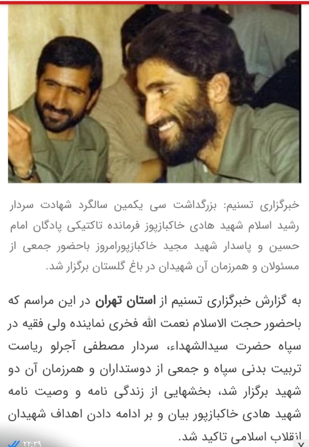 شهید فریدون خاکبازپور در 12 فروردین ماه سال 1333 در تهران متولد شد.این شهید والامقام دارای ملیت ایران و مذهب اسلام شیعه بود.وی تحصیلات خود را تا مقطع دیپلم ادامه داد و به عضویت سپاه پاسداران درآمد. این شهید گرانقدر سرانجام در 23 فروردین ماه سال 1362 در سن 29 سـالگی و در عملیات سال والفجر حوادث ناشی از درگیری در ابوغریب به مقام والای شهادت نایل گشت. مزار این شهید در قطعه 28 ردیف 107 شماره 5