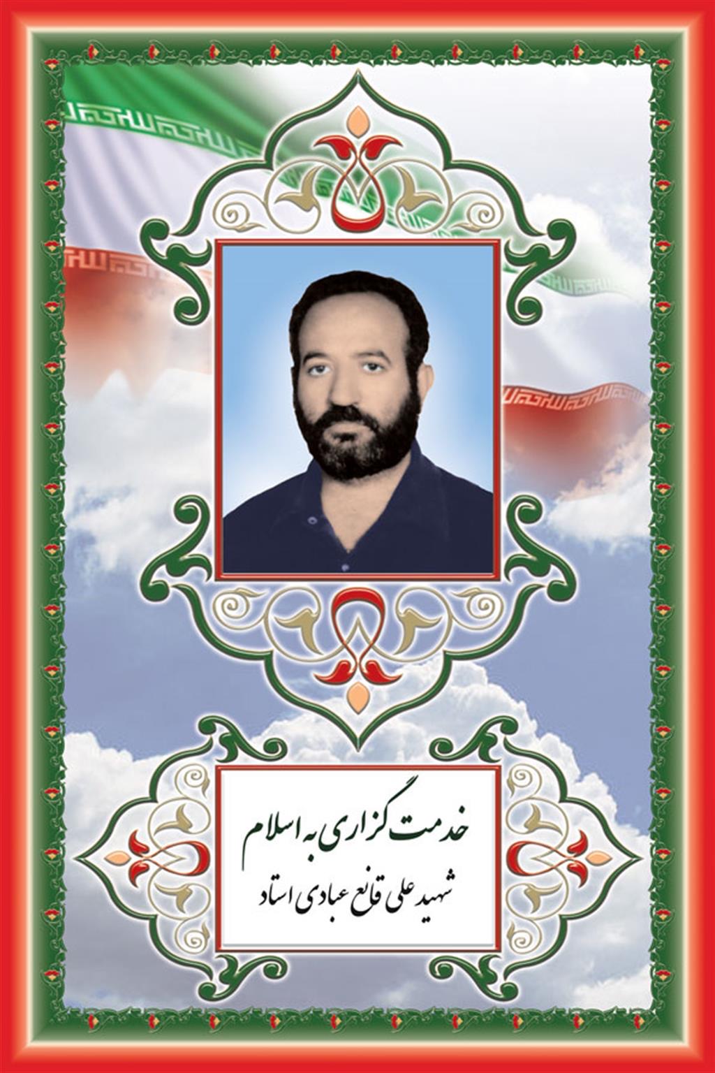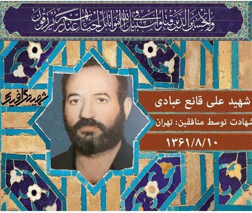 شهید علی قانع عبادی استاد در 1 تیر ماه سال 1318 در مشهد پا به عرصه هستی نهاد.این شهید والامقام دارای ملیت ایران و مذهب اسلام شیعه بود.وی تحصیلات خود را تا مقطع ششم ابتدایی ادامه داد و به عضویت ذکرنشده درآمد. این شهید گرانقدر سرانجام در 10 آبان ماه سال 1361 در سن 43 سـالگی توسط ضد انقلاب در تهران نوخ میرفخرا به شهادت رسید. مزار این شهید در قطعه 26 ردیف 35 شماره 23