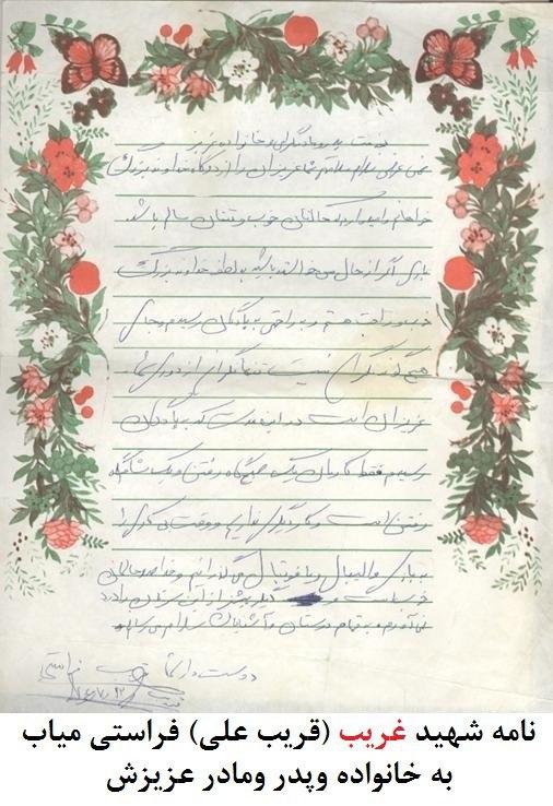 نمونه اي از دست نوشته هاي شهيد قريب علي فراستي: